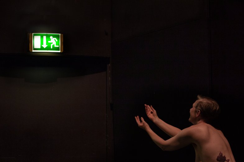 “EXIT” is the performance of the hour. It gains new relevance against the backdrop of current politics. Antonia Baehr dedicates this work from 2018 to an ever-present, but mostly overlooked phenomenon of western theatre buildings: the obligatory illuminated emergency exit signs. She makes them the stars of her lecture performance. “EXIT” takes us into a sphere between light and dark, where the green glow confronts us with the supposedly fixed oppositions of inside and outside, safety and danger or body and image. It is a dream journey through the things that theatre tries to repress and the phantasm of the Western image of humanity it has helped to create.Based on audio messages by Lindy Annis, Frédéric Bigot, Frieder Butzmann, Carola Caggiano, Mette Edvardsen, Silvia Fanti, Neo Hülcker, André Lepecki, JMK Nicholas, Stefan Pente, Anne Quirynen, Michael Schlund, Anna Wagner and an interview with Susanne Görres.