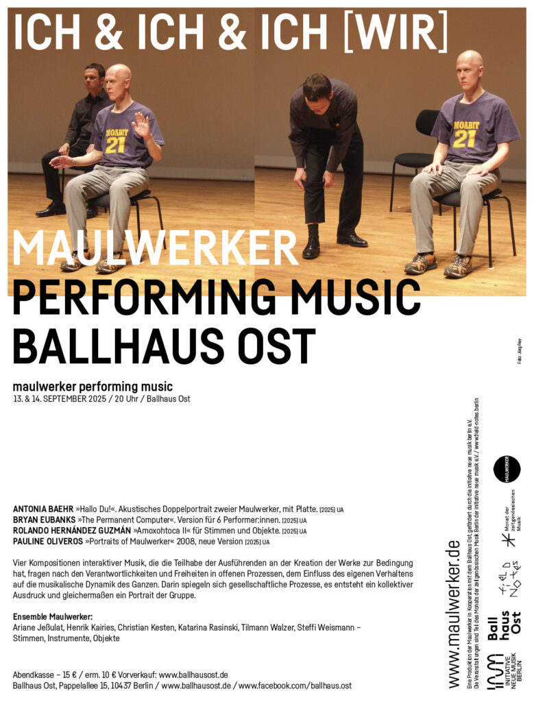 September 13-14, 2025 Maulwerker Performing Music – ICH & ICH & ICH [WIR], Ballhaus Ost, Berlin