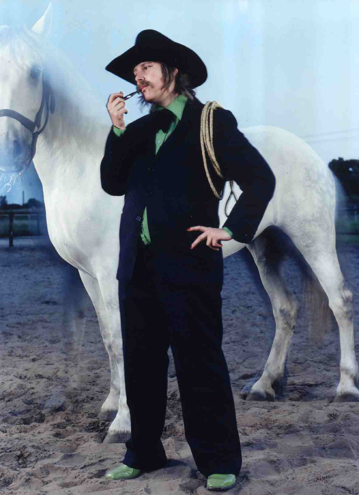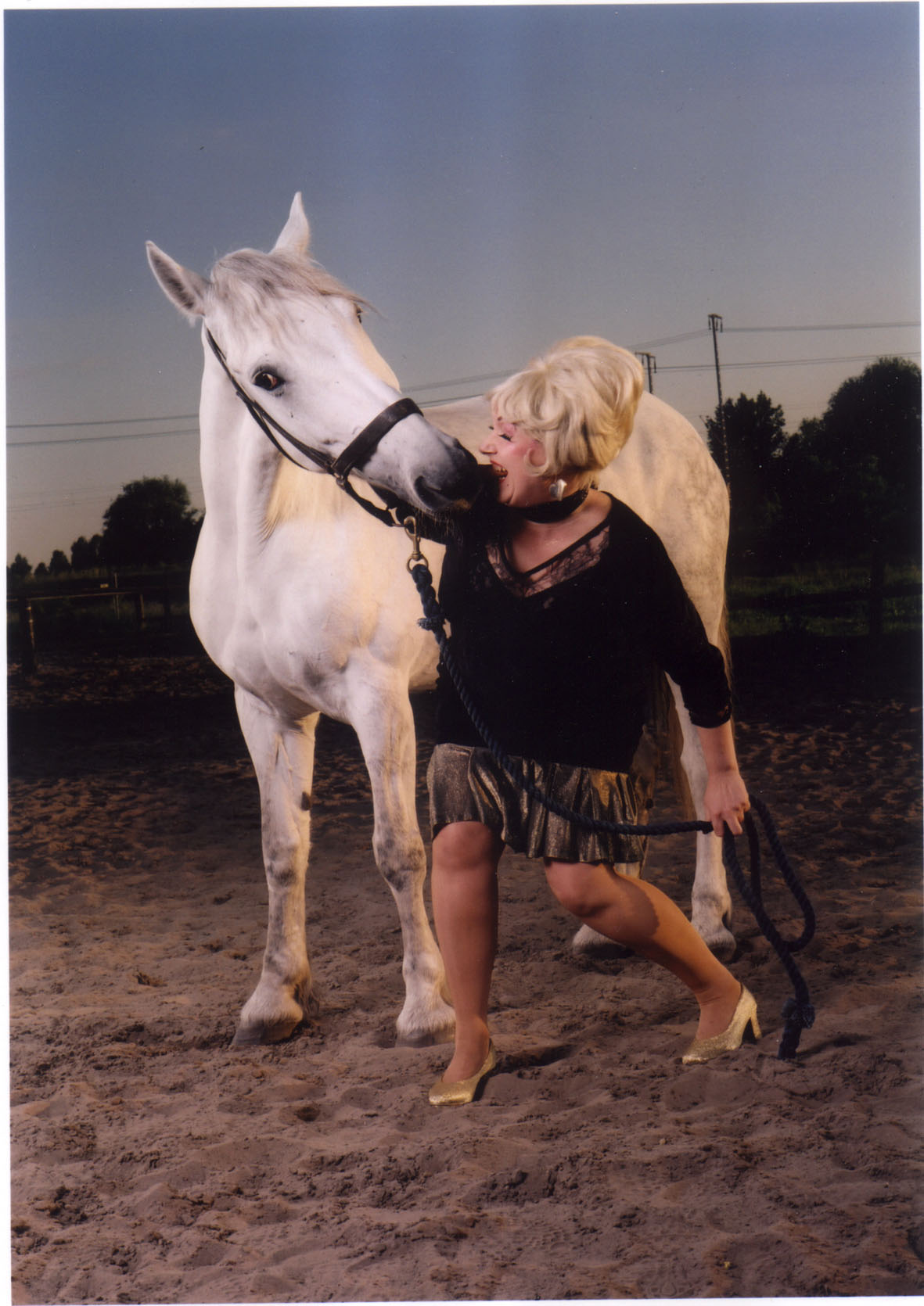Werner Hirsch was born in 1968 and grew up in West Germany. Shortly before the Abitur, he emigrated to the U.S.A. to set up a ranch. There he fell in love with the Drag Queen Agnes B., with whom he still lives together. Werner Hirsch has been working since 2002 as a freelance artist and has been living in the Cotswolds, Great Britain. Through his lover he discovered and in time conquered the stage as Prince Greenhorn. He has been written about and portrayed photographically and in oil, among other things for the books „Gender Game“ of Marion Strunk and „Gender Fuck“ of Annette Frick. Anja Weber accompanies him in her photographic oeuvre, a.o.t. through her life-size portraits that were to be seen in the exhibition „GO DRAG!“ 2002 in Berlin. The same year, he was honored with the first prize of the „Grand Prix d’Amour“ at Staatsbank Berlin. The following year, he created the film „Kings & Disasters“ which premiered at “Lesbenfilmfestival“ at Cinema Arsenal Berlin and was shown at “Pink Screens“ film-festival Brussels (05/04), “Israel’s Lesbian Film Festival“ Tel Aviv (06/04), “Ladyfest“ Berlin (08/04), “image+nation“ Montréal (10/04), a.o.