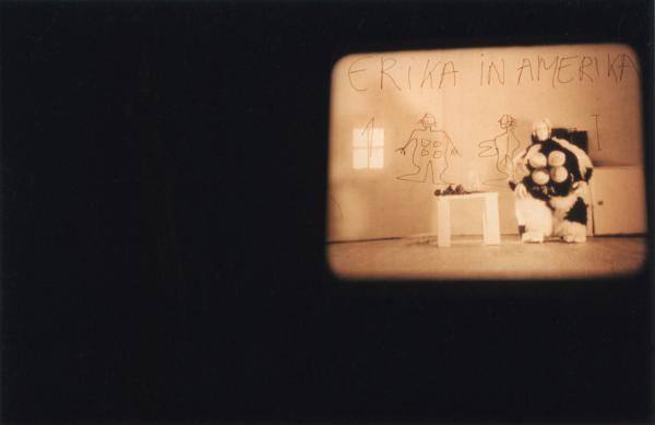 Erika in Amerika is the impossibility of explaining Antonia Baehr. The movie theatre becomes a classroom and we become Antonia Baehr’s students. It appears that she is teaching us about a renown Cow-Woman named Erika and the skills required for American Performance Art. But really we are pulled into a maze of interlocked identities within non-linear forms of narrative.
