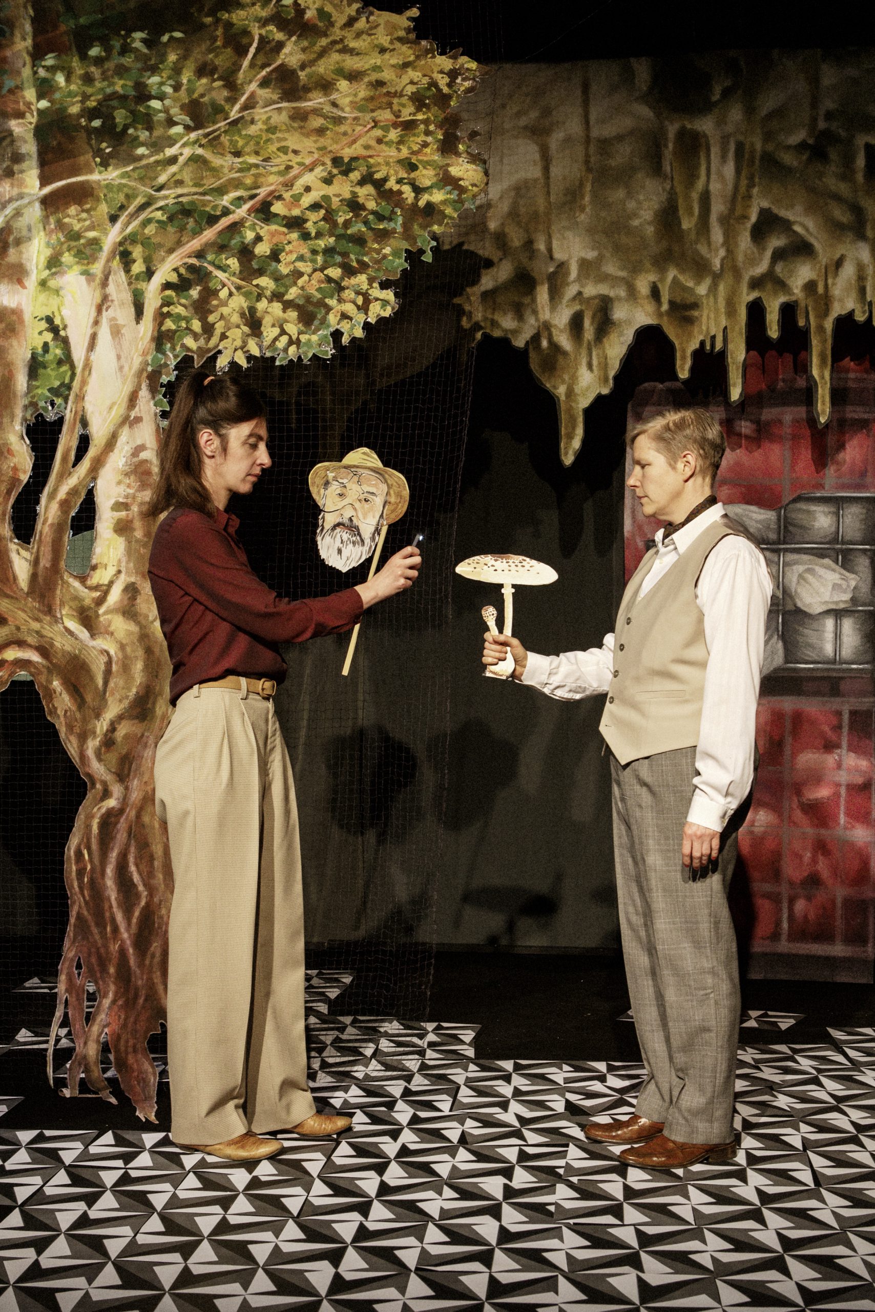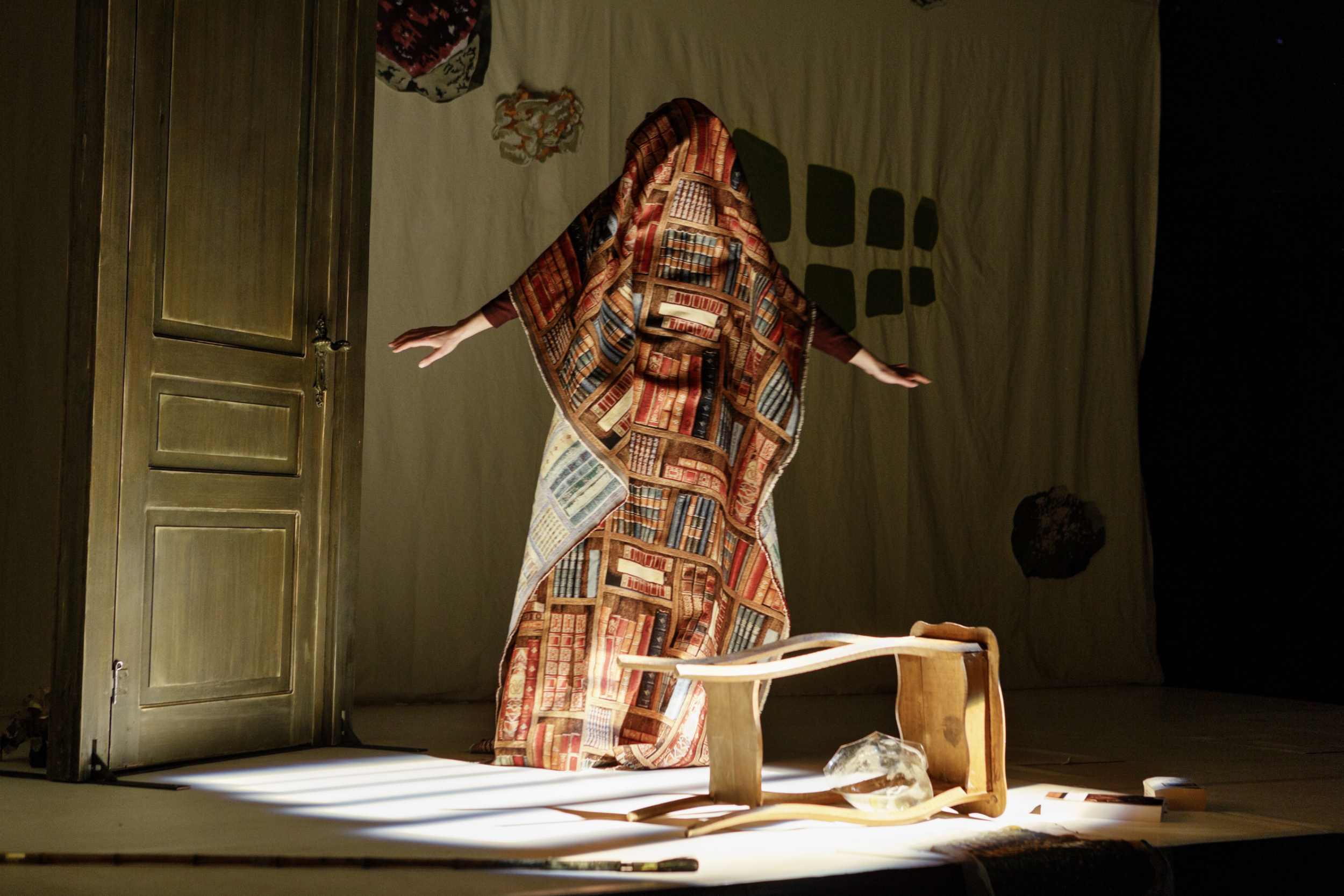 Five small stages, four live improvised songs, twenty-three whatsapp messages, some dreams of the theatre, nine mushrooms, a treasure of petals and at least two magic tricks. Lucile Desamory and Antonia Baehr are interested in hidden classification systems. In their collaboration, they roam through stage elements they found at the scrapyard of the Leipzig Opera House and follow the fascination of worn objects, including some from their own past. They have painted, masks and portraits, they have had conversations, they will wear some wigs and in between they will lose their subject.