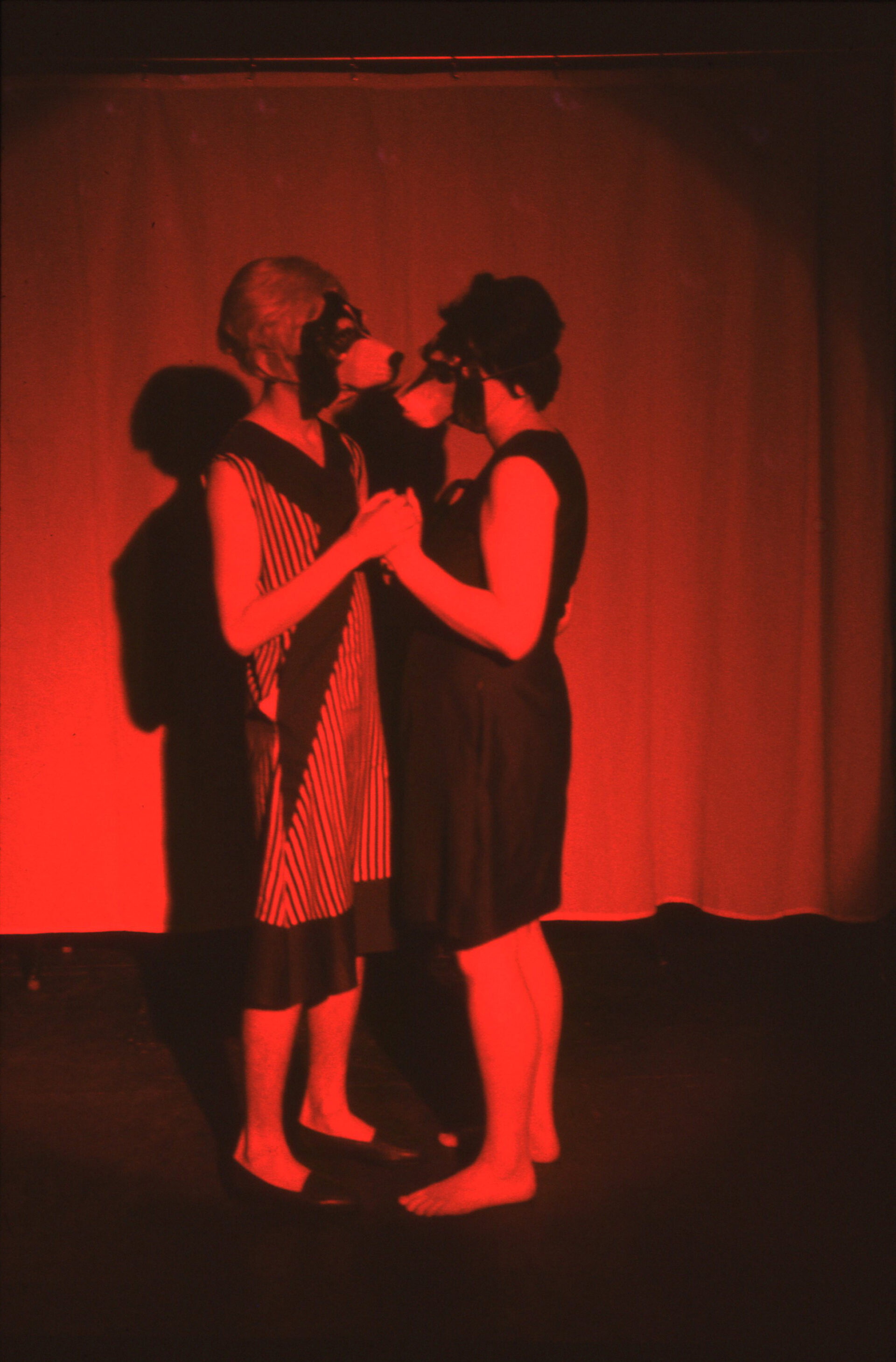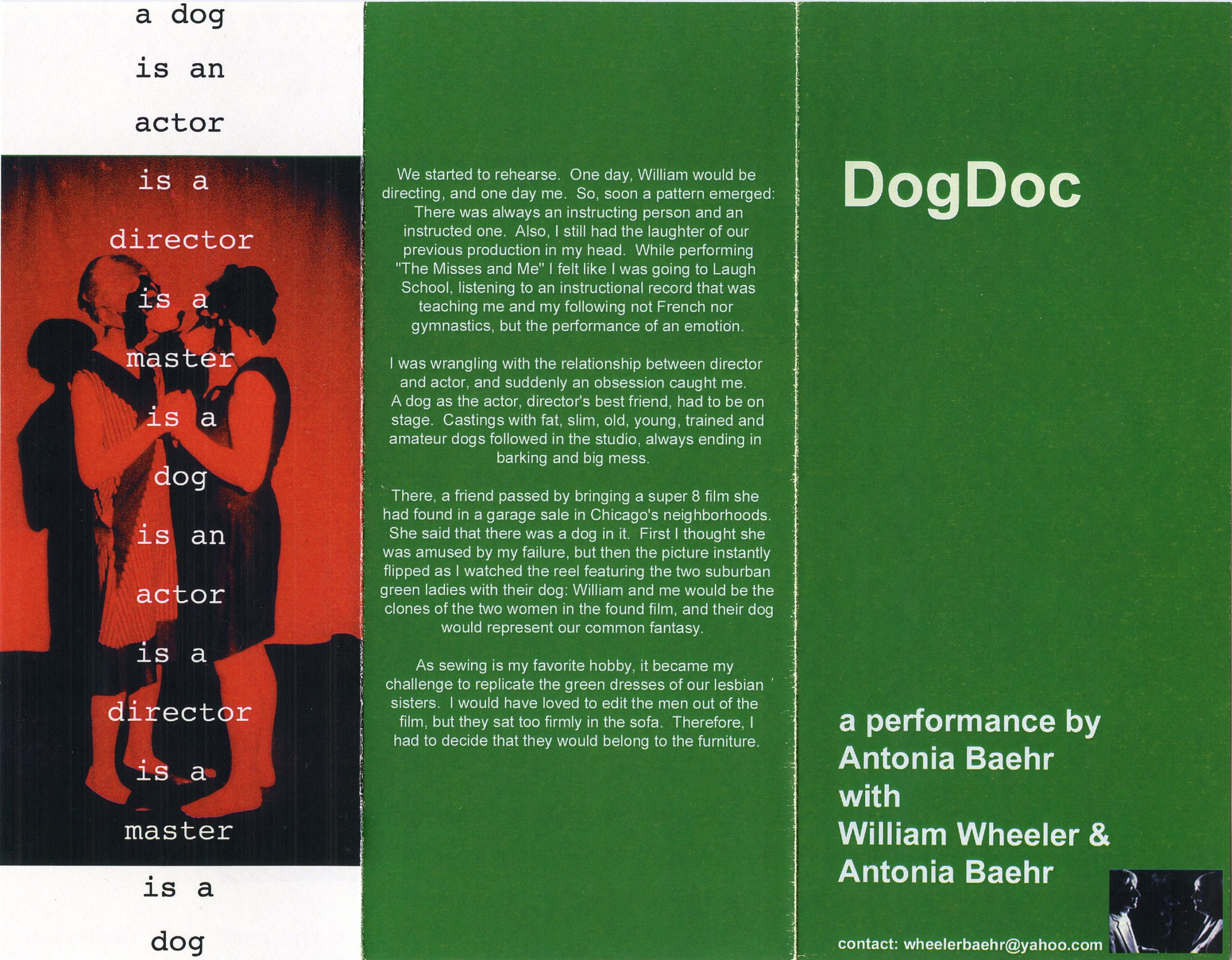 In DogDoc Antonia Baehr and William Wheeler are the clones of two unknown green ladies from a found super 8 home movie. They play uncanny games with their doggy, instructing one another in obedience and desire.