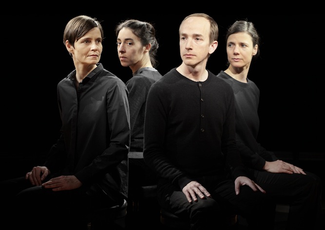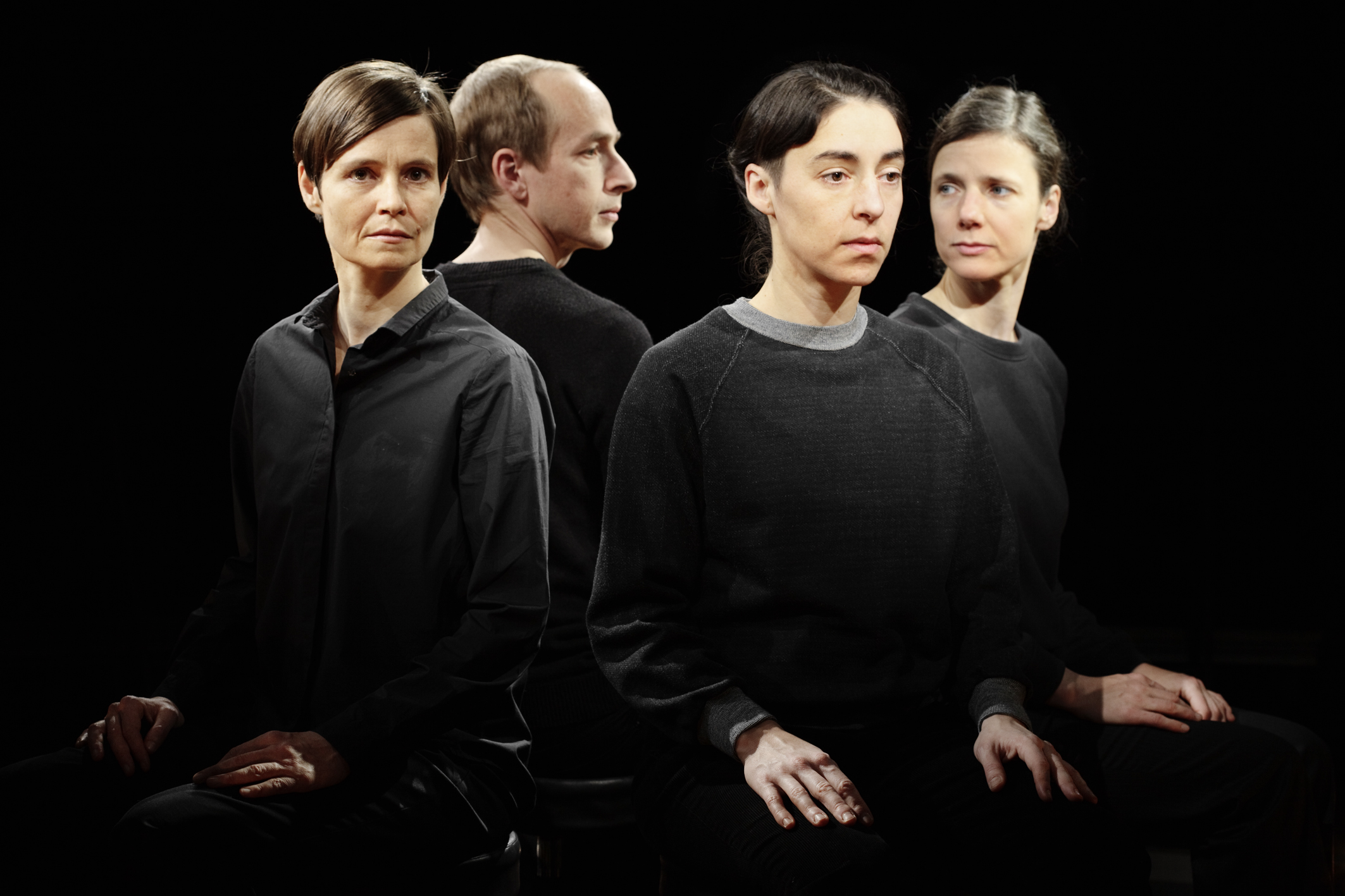 Quattro visi emergono dal buio. Avvolti nella luce soffusa, sono il centro di una piccola arena in cui è seduto il pubblico.