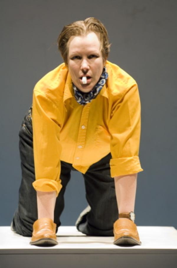 A person enters the stage. For whom and for whose pleasure? What motivates his/her moves? What structures them? Henry Wilde aka Antonia Baehr looks at scores as structures that put us into motion. Thank you started with the questions: what moves me? how do I imitate? The fact that we are always performing, both in our everyday lives as well as in the theatre, raises the question of how imitating in the theater is different than in life and how this imitation gets read differently. Here, Antonia aka Henry and Valérie aka Olivier pose the question of imitation – of mimesis, one of the fundamental ingredients of occidental theater tradition – from a point of view of post-moustache dykes and beyond the binary contrast between acting and costume on the one hand and so called neutral performance on the other. Thank you is first and foremost a work model, utopian and real, with two persons, one theme – in variations.