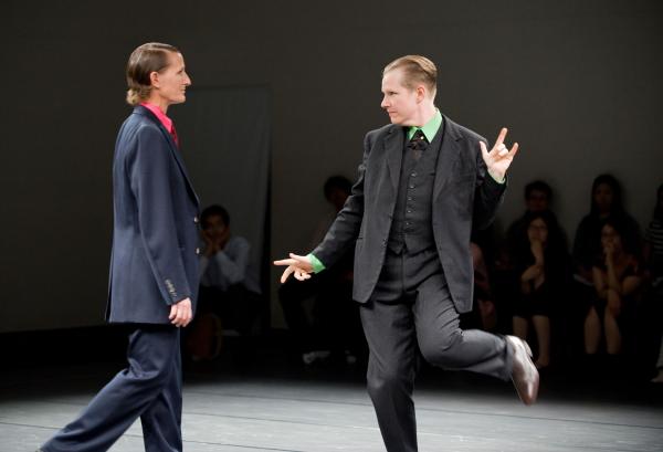 OVER THE SHOULDER is a choreography for steps and emotions. It’s a duet by Tamar Shelef and Antonia Baehr, it’s an exploration about the expression of emotions as choreographical material for composition – emotions deprived of their causes and effects, It’s an arm wrestling between the reins of an abstract score and the unruly patterns of affects, it’s taking pleasure in impossible tasks and playing games, it’s queer abstraction.