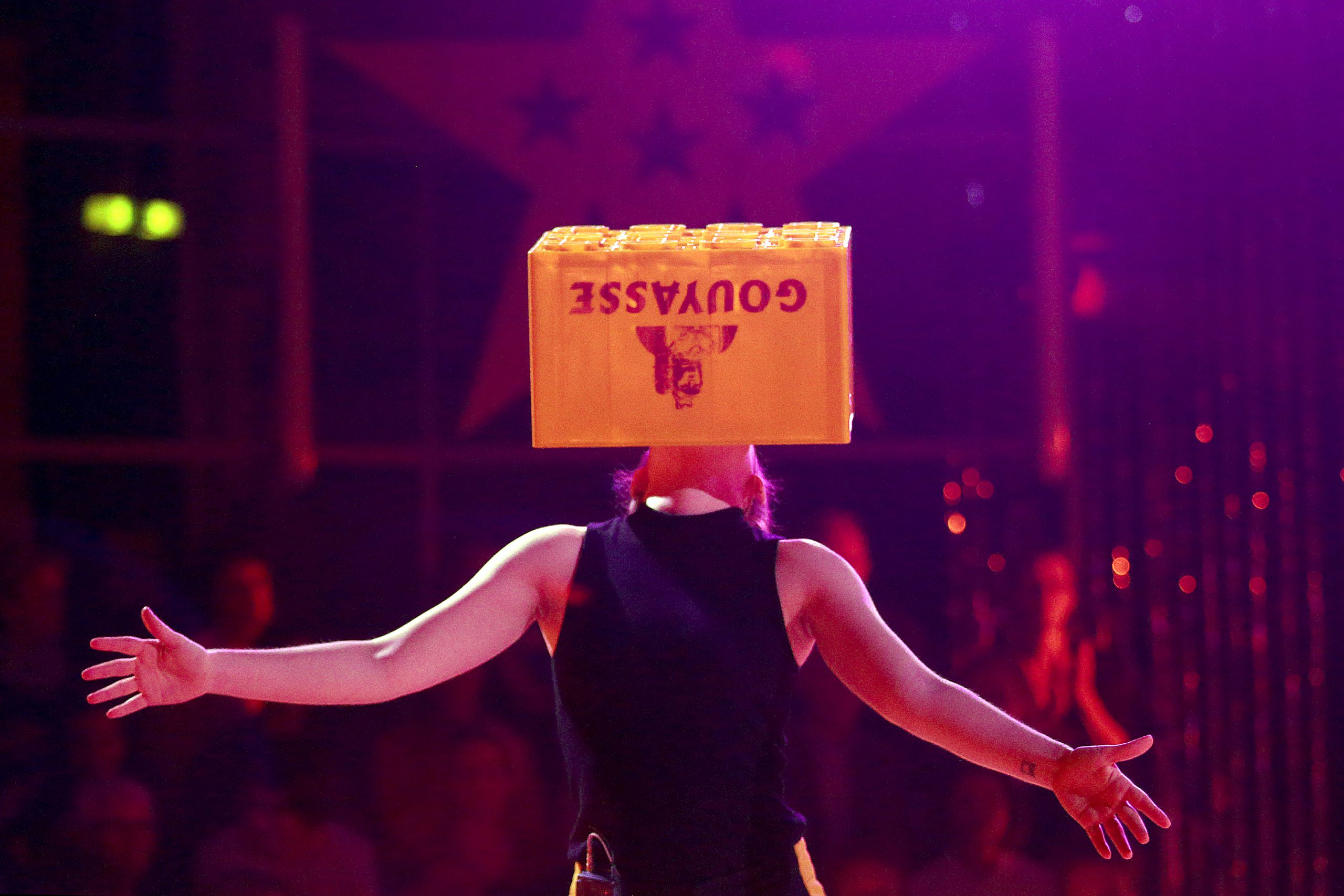 Antonia Baehr, Valérie Castan and Emmilou Rößling form the circus family „La Fortunada.“ As is typical in circus dynasties, mum Butch-Daronne Castan passed on her acrobatic act „La Gouyasse“ which she first created for „Already Made“ by Gaëtan Bulourde, to their daughter. Daddy Mapa Baehr did the same with „Le Tabouret“ which came to life in the same show. Young Velvet Emmilou inherited her parents interest in objects and made her own number for the occasion: „La Petite Cuillère“.